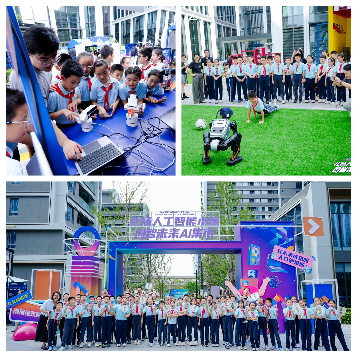 坐落于北杨人工智能小镇的徐汇区逸夫小学,将课堂“搬”进了集市,为学生带来了一堂生动的AI体验课。作为一所以创造教育为核心理念,以科技教育为鲜明特色的学校,徐汇区逸夫小学与北杨小镇持续深化合作,推动教育与产业、科技深度融合,共同探索“人工智能+教育”创新应用场景,打造“在校即见未来”的科学教育资源体系,切实培养学生的创新精神和实践能力。