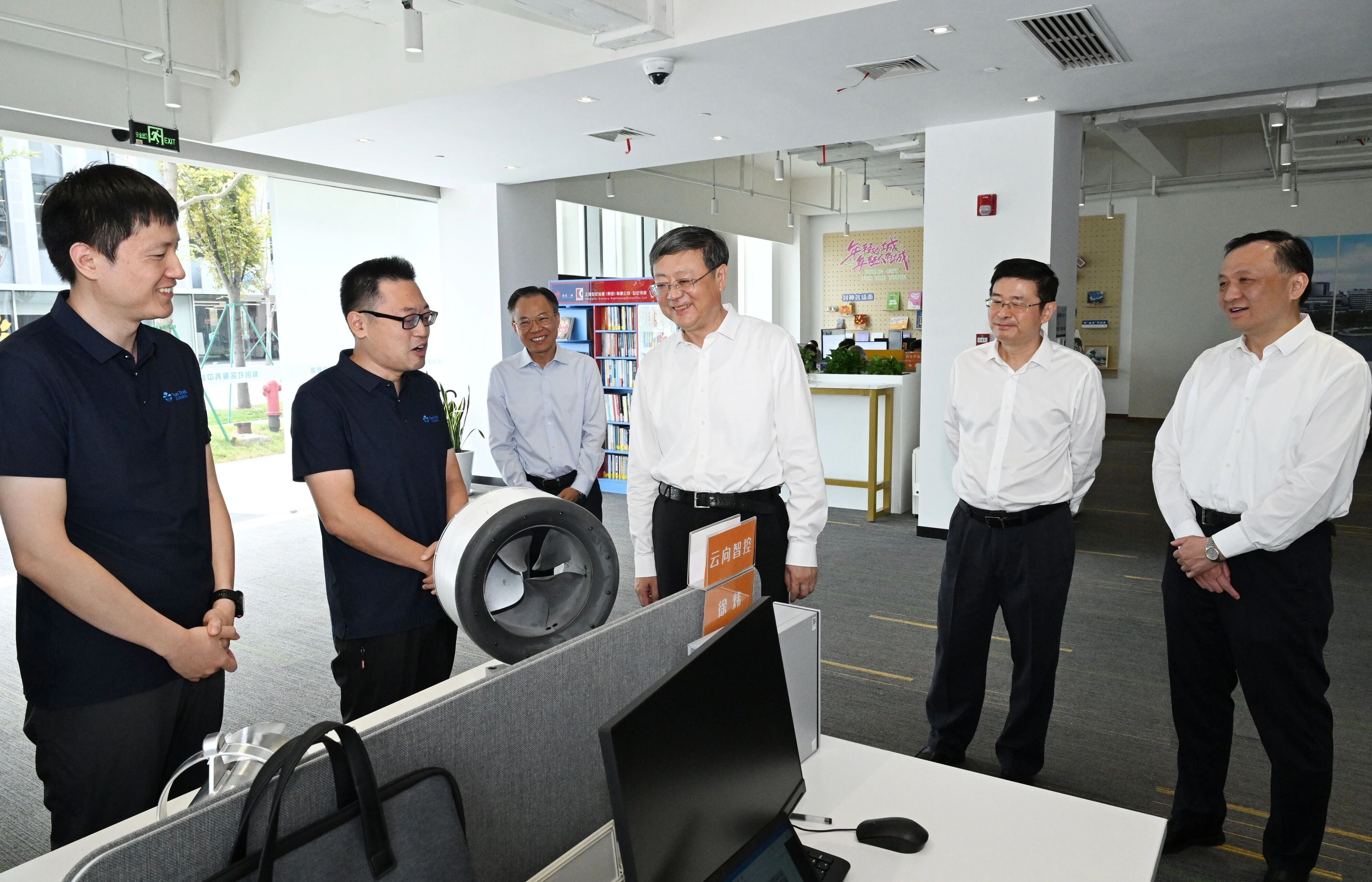 在滴水湖人工智能创新港,陈吉宁走进科创社区服务中心,了解服务初创企业的运行模式和创新做法,关切询问入驻的创新创业团队有哪些困难需要帮助解决、哪些政策服务需要持续加力。陈吉宁说,临港新片区要以更宽广的胸襟、更有力度的政策、更加便利的服务集聚创新创业英才。立足产业定位,发挥区位优势,契合年轻人的创业方向,提供全周期全方位支持,吸引更多创新创业者汇聚临港,扎根这座“年轻的城、年轻人的城”,心无旁骛干事创业,创造梦想、创造未来。