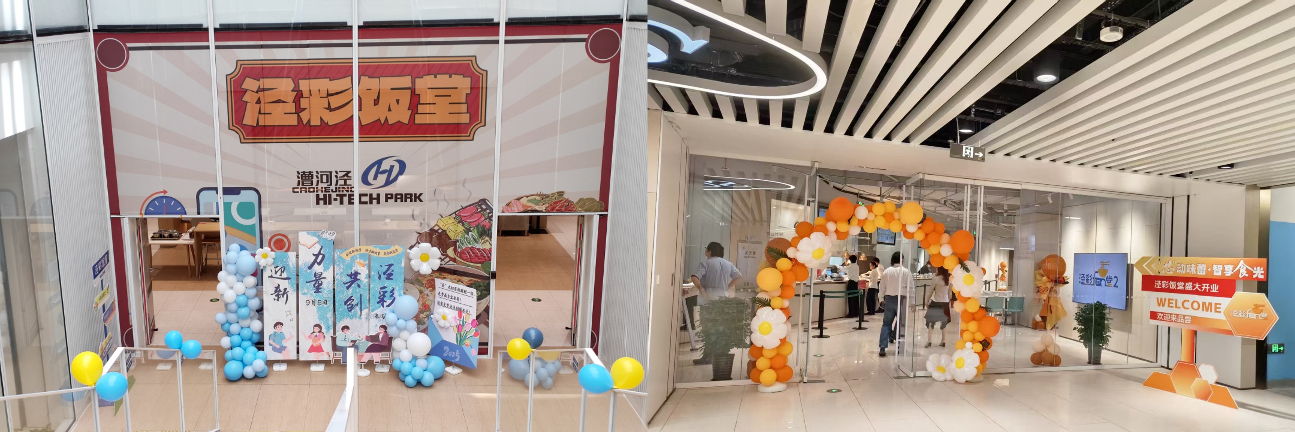 商业与生活服务同步升级。园区现已有“泾彩饭堂”,解决园区企业用餐需求,2.2万方的“漕河泾M+”即将于年底盛大开业,引入餐饮、零售、休闲等业态,兼顾小镇企业、合作院校及周边社区的需求;在“泾彩饭堂”基础上,9月新增二店并优化档口布局,解决企业员工用餐需求,这些“以人为本”的细节设计,让产业空间更具生活温度。