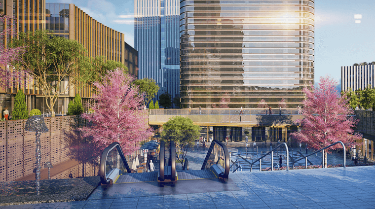 智创TOP对标“浦江两岸开发标准”,实施高起点规划。整体空间规划由世界级建筑和景观设计大师(ennead、DLC等)担纲主笔,融入“小尺度、人性化、高密度、高贴线率”以人为本的建筑灵魂。项目基于小地块、密路网的设计理念,对“倒T”字型整体地块进行空间优化和流线打造,力求实现“建筑可以阅读,街区适合漫步,城区始终有温度”,打造“宜居宜创宜业”的城市社区形象,为营造生态花园式办公环境奠定良好基础。